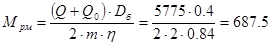 где Q+Q0 – вес груза с крюком (кг) (Q+Q0 = 5775 кг)