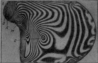 Вдоль каждой полосы (m = const) разность главных усилий h.(s1 -s2)—постоянна. Порядок полосы m отсчитывается от нулевых точек, т. е. точек, в которых m==0.