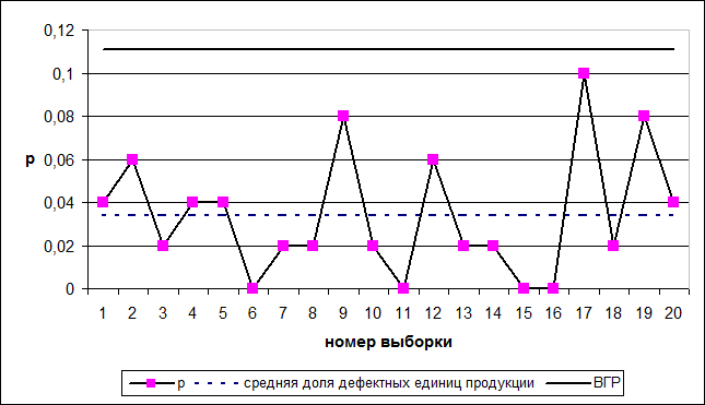 2.2.2 Контрольная р -карта для выборки постоянного объема