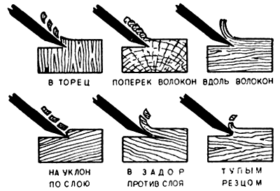 При строгании возможно резание древесины вдоль волокон, поперек их и с торца.