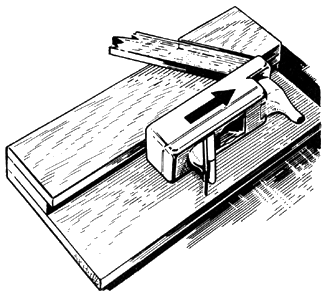 Рейки, изготовленные на пиле с припуском 0,5 мм на сторону, кладут в подходящий желобок и, держа левой рукой рубанок, правой рукой вытягивают рейку на себя.