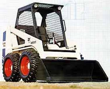 Компактный и мощный погрузчики модели 843 типа "Bobcat" может поднимать ковш с грузом кирпичей или блоков весом до 771 кг, его подъемная высота 3037 мм, погрузчик снабжен самовыравнивающимся ковшом. В кабину оператора погрузчика "Bobcat" встроено предохранительное устройство от опрокидывания машины и от падающих предметов.