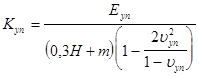 При отсутствии экспериментальных исследований модули упругости отдельных слоёв рассчитывают по формулам (28-32). Когда используют результаты лабораторных исследований по определению модулей упругости /4/, то в этом случае необходимо учитывать коэффицент структурного ослабления, который при отсутствии соответствующих исследований рекомендуется принимать 0,6-0,7, т.е. Еу (Ек ) в массиве = (0,6-0,7) Е0 в образце.