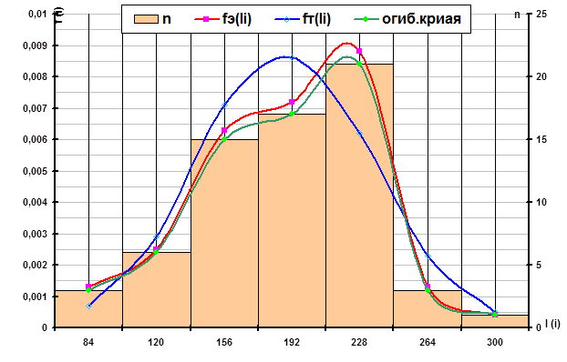 По результатам расчётов построить гистограмму и кривые эмпирической и теоретической плотности распределения вероятностей, и вероятности безотказной работы детали.