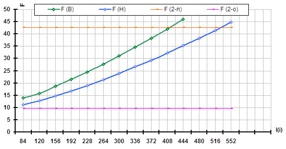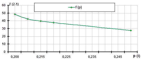 В соответст вии с зависимостью {29}, рассчитывается значениеF2-1 , соответствующее величинеpi , из условия задания, и несколько произвольно выбранных значений в диапазоне от начальной до предельной площади в замке. На основании полученных значений строится зависимостьF2-i = f (pi ) .