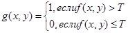 гдеf( x, у) — интенсивность в точке (х, у), р( х, у)— некоторое локальное свойство, определяемое в окрестности этой точки. Пороговое изображение дается следующим выражением:
