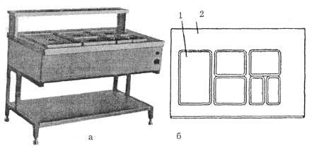 Под крышкой расположены тепловые шкафы со съемными полками. Пространство между крышкой стойки и верхним ограждением теплового шкафа образует нишу, куда можно устанавливать тарелки.