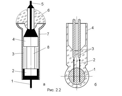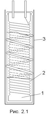 Металлические термометры сопротивления получившие наибольшее распространение, имеют чувствительный элемент в виде тонкой (диаметром 0,05 мм) проволоки 2, намотанной на слюдяную пластину 1 (или пластмассовый цилиндр) и помещенный в защитный чехол 3 (рис. 2.1). проволоку изготовляют в основном из чистых платины или меди. В соответствии с этим различают термометры сопротивления платиновые (ТСП) и термометры сопротивления медные (ТСМ).