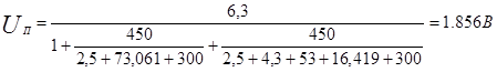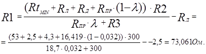 определяем: Rпр = 16,419 Ом, R1 = 73,061 Ом; Rп = 13,866 Ом.