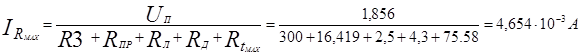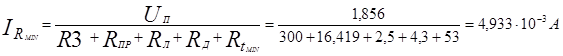 Неравенство выполняется. Аналогично находим значение тока в цепи включения реохорда при Rt = R
