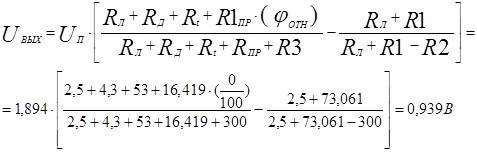 Проверяем градуировку шкалы, например при 0, 20, 40, 60, 80, 100 градусах. Для этого рассчитываются значения Uвых при указанных значениях температуры по формуле:
