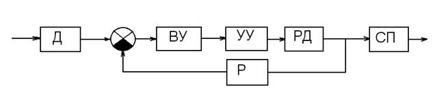 (в виде напряжения постоянного тока) подается на входное устройство ВУ, представляющее собой преобразовательный элемент, в котором сигнал рассогласования