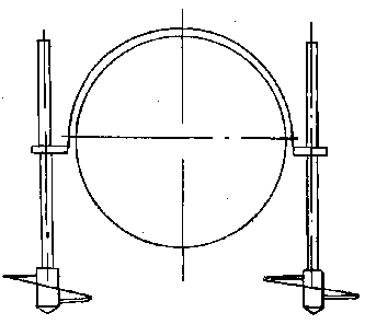 ВАУ применяются для закрепления трубопроводной нитки, прокладываемой наземно, в насыпях и подземно на заболоченных и периодически затопляемых участках с устойчивыми подстилающими грунтами, обеспечивающими закрепление в них винтовых анкеров и установку анкерных устройств. Сварные анкера раскрывающегося типа АР-401 (см.рис.7). Способ основан на использовании прочностных свойств и продольной жесткости самого трубопровода, позволяющих балластировать его сосредоточенными нагрузками в несколько десятков тонн. Закрепление трубопровода выстреливаемыми анкерами. Способ предложен для использования его в минеральных грунтах. Сущность основана на том, что анкеры с прикрепленными к ним тягами выстреливаются в грунт гарпунно-китобойной пушкой с трактора или автомобиля. Тяги анкеров после подтягивания приваривают к силовому поясу, под который предварительно укладывают прокладку из бризола и футеровочный мат. |