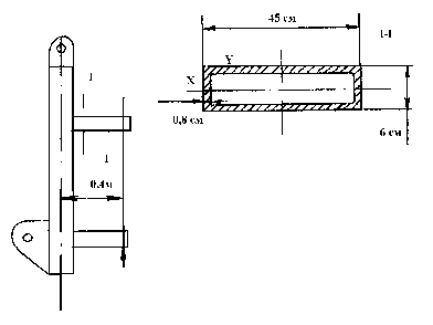 Wx = b · a2 · (3 · b +1) = 0,8 · 62 · (3 · 45 +1) = 225,6 см3 3 a 3 6 Wy = 0,8 · 452 · (3 · 6 + 1) = 756 см3 3 45 Wkp = 45 · 6 · 0,8 = 216 см3. Принимаем Р = 6 000 кг · с, тогда момент изгибающий: Мизг = Р · 40 = 6 000 · 40 = 240 000 кг ·с · см; Тизг = Мизг = 240 000 = 1 063,8 кг ·с/см2 Wx 225,6 |