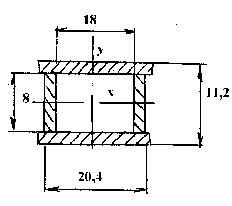 a = 11,2; a1 = 8. b = 20,4; b1 = 18. Wx = b·a3 -b1 · a13 = 20,4 · 11,23 - 18 · 83 = 289 см3 6 · а 6 · 11,2 Wy = a · b3 - a1 · b13 = 11,2 · 20,43 - 8 · 183 = 395 см3 6 · b 6 · 20,4 Найдем изгибающий момент: Мизг = 6 000 · 30 = 180 000 кг ·с ·см; Тизг = Мизг/Wx = 180 000/289 = 622,8 кг ·с/см2 . |