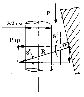 Мкр = 7 800 кг · с ·см - крутящий момент погружателя; Р = 5 000 кг·с - усилие, передаваемое гидроцилиндром подачи. Р = sin 8° = 0,139 => R = P = 5 000 = 35 971 кг·с R 0,139 0,139 Rпр ® cos 8° = Pпр = 0,985 => R