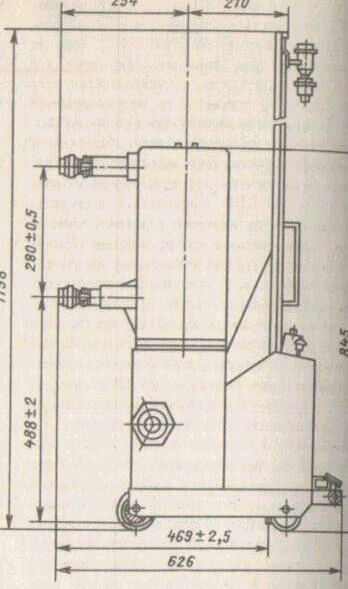номинальный ток - 1000 А; номинальный ток отключения — 20 кА; механический ресурс—40000 циклов «ВО» с заменой камер через 20000 циклов. Для повышения уровня изоляции наружной поверхности ВДК она помещена в фарфоровую покрышку, залитую трансформаторным маслом. Габариты выключателя с приводом (ширина, глубина, высота) — 2,23 х 0,575 х 2,09 м. Масса выключателя с маслом - 880 кг.