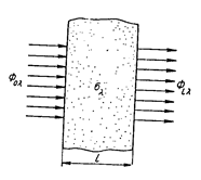 где sl — коэффициент ослабления потока монохроматического излучения, зависящий в общем случае от свойств среды и дли ны волны, км-1 ; dl — толщина элементарного слоя среды, км.
