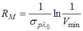 Под м. д. в. R м принято понимать предельную дальность видимости темных предметов с угловым размером 0,5° стандартным наблюдателем (Vmin = 0,02) в дневное время на фоне неба. Для определения R M можно использовать Таблица 1 .