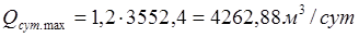 Максимальный суточный расход воды в сутки наибольшего водопотребления определяется по формуле: