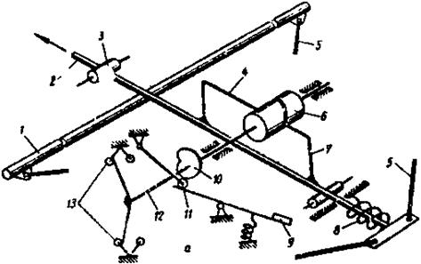 Выравнивание движения промежуточных тележек выполняется автоматическим механизмом синхронизации, изображенном на рис. 4.