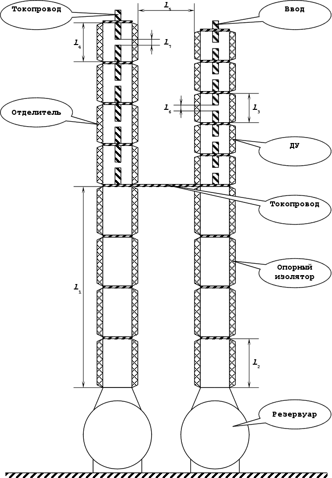 Модульный принцип построения серий. Этот принцип позволяет строить ВВ в весьма большом диапазоне напряжений (от 35 до 1150 кВ) из одинаковых модулей, производить помодульные испытания и иметь максимально выгодные условия производства, эксплуатации и монтажа. Модульный принцип практически однозначно определяет размещение модулей на высоком напряжении с опорной или подвесной изоляцией;