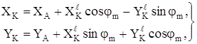 Ю.Ф.Морошкин [6] для составления уравнений замкнутости векторных контуров предложил метод преобразования координат. Согласно этому методу, с каждым звеном механизма связывается своя система координат, и составляются уравнения их преобразования. Уравнения имеют матричную форму, удобную для вычислений на ЭВМ и позволяют получить координаты точки, находящейся на одном звене, в системе координат, связанной с каким‑либо другим звеном.