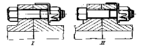 В тех случаях, когда применение коротких жестких болтов продиктовано необходимостью (например, случай крепления отъемных листовых элементов рам, облицовок и т.д.), приходится прибегать к периодическому осмотру и подтяжке ослабевших соединений (регулярная подтяжка всех болтовых соединений шасси и корпуса автомашин). Шплинтовку гаек в данном случае не применяют, так как она только затруднила бы подтяжку.
