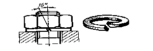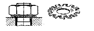 При этом способе под гайку подкладывают шайбы, выполненные из закаленной стали и снабженные зубчиками. Форма зубчиков такова, что они, не мешая завертыванию гайки, препятствуют ее отвертыванию, впиваясь своими острыми гранями в торец гайки и в опорную поверхность корпуса и действуя наподобие храповых собачек (откуда и возникло название шайб).