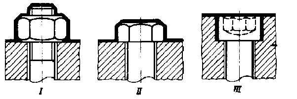 В некоторых случаях для машин, работающих в закрытых помещениях без тряски и толчков, наружные крепежные детали специально не стопорят, а фиксируют лакокрасочными покрытиями, наносимыми на поверхность машины (рис. 1 — III;). Способ этот, разумеется, не может гарантировать надежного стопорения; все же он предохраняет крепежные детали от самоотвертывания.