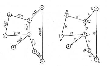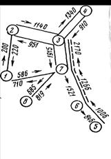 Если какой-либо маршрут целиком совпадает с участками других маршрутов, то пассажиропоток по нему устанавливается на основании максимального потока пассажиров между конечными пунктами этого маршрута определяемого по таблице 6. В примере таким является маршрут 2-4, совпадающий с участками маршрутов 2-7 и 4-7. Так как пассажиропоток между пунктами 2 и 4 в обе стороны одинаков (350 пасс.), то для этого маршрута устанавливается пассажиропоток в 350 пасс. Это число исключается из густоты пассажиропотоков по участкам 2-3 и 3-4.