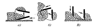 Рисунок 1.1 – Способы захвата насыпного груза их штабеля рабочими органами погрузчиков: