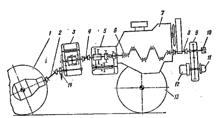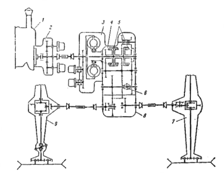 Рисунок 1.7 – Кинематическая схема малогабаритных автопогрузчиков с гидромеханической трансмиссией