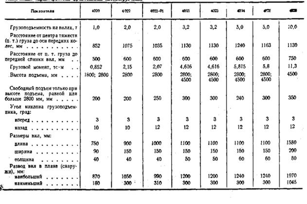 Рисунок 1.9 – Основные эксплуатационные параметры автопогрузчиков
