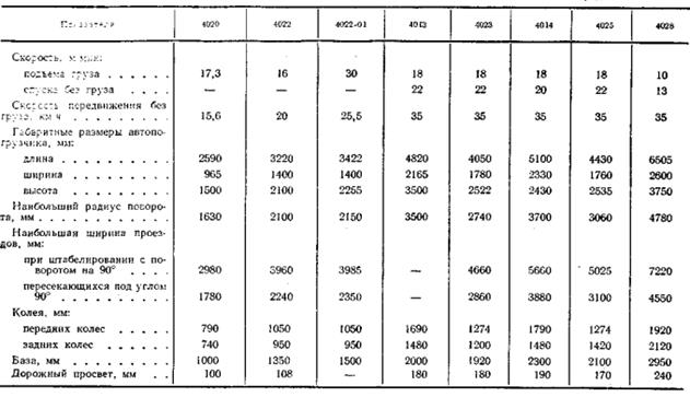 Таблица 1.1 - Техническая характеристика фронтальных автопогрузчиков