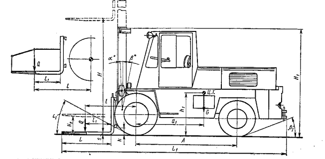 И соответственно расстояние от оси передних колес до центра тяжести автопогрузчика