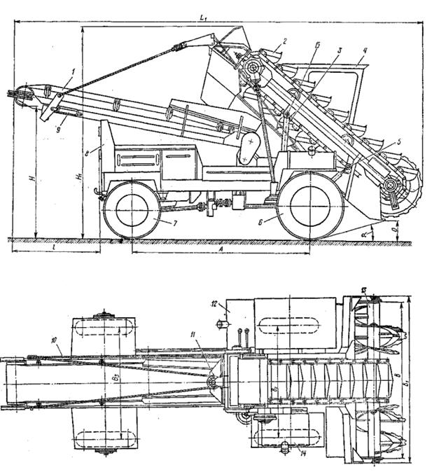 Для зачерпывания насыпных грузов способом нижнего захвата применяют одно- и многоковшовые погрузчики. У одноковшовых погрузчиков черпающим органом является ковш 2 (рисунок 2, б),