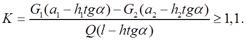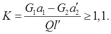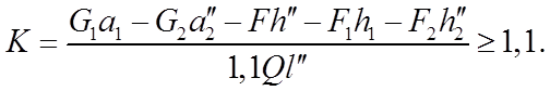 Соответственно принятым на рисунке обозначениям коэффициент грузовой устойчивости