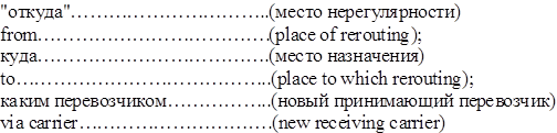 - если изменяется маршрут ВП (carriagewillbebydifferentrouting);