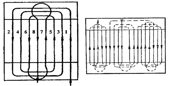 Рис. 1. Гоновые способы движения: а) круговой гоновый; б) с расширением прокосов.