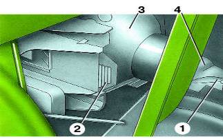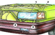 Рис. 2.1. Передня фара автомобіля, покажчик повороту 1 - фара; 2 - покажчик повороту; 3 - протитуманна фара; 4 - декоративна рамка протитуманної фари