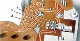 Рис.3.2. Покажчик повороту 1 - колодка; 2 - пластмасова засувка; 3 - корпус; 4 - патрон