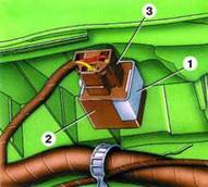 Рис. 6.5. Реле-переривник покажчиків поворотів 1 - тримач реле; 2 - реле переривник; 3 - сполучна колодка