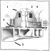 Рис. 6.6. Звуковий сигнал 1 - корпус, 2 - якірець, 3 - мембрана, 4 - контактна пластина, 5 - зумер