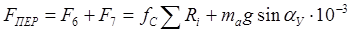 — сопротивления соответственно резанию грунта, трению ножа о грунт, перемещению призмы волочения по грунту, перемещению грунта вдоль отвала, перемещению грунта вверх по отвалу, перемещению автогрейдера на колесах, преодолению уклона пути и разгона автогрейдера до установившейся рабочей скорости, кН;