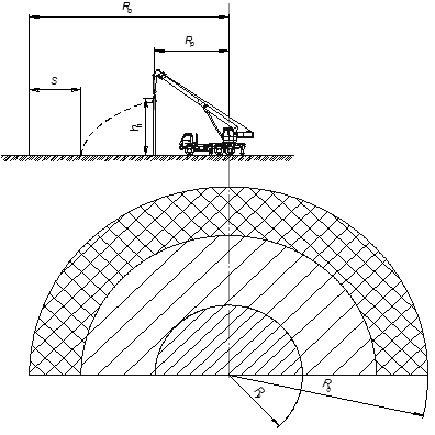 При работе крана, обслуживающему персоналу необходимо учитывать опасные зоны (зоны возможного падения и отскока груза).