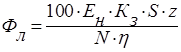 Световой поток лампы Фл (лм) одного светильника находится по формуле: