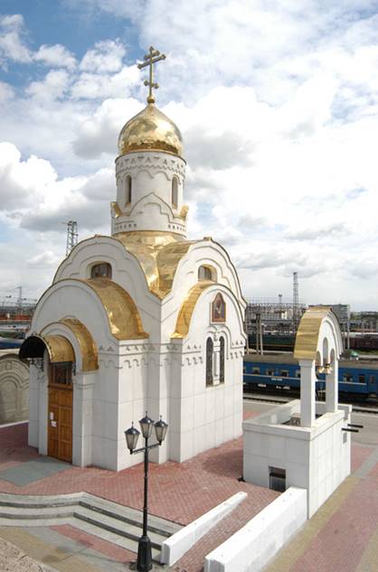 Строительство велось на пожертвования южноуральских железнодорожников и предприятий-партнеров магистрали. Церковь построена в стиле древнерусской храмовой архитектуры XII-XIV вв. Ее площадь – 120 квадратных метров, высота – 23 метра. Вход в церковь украшает витраж с изображением Божией Матери. Рядом с храмом были построены колокольня с шестью колоколами и церковная лавка. (См. Прил.12)