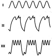 Якщо мається коротке замикання в діодах випрямного блоку (діод пробитий), або обрив в ланцюзі діода (обмотці стартера) - форма кривої різко міняється: порушується рівномірність зубців і з'являються глибокі западини (рис.4.2 ІІ й ІІІ).