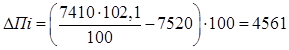 Общее абсолютное изменение прибыли за счет всех факторов составляет: